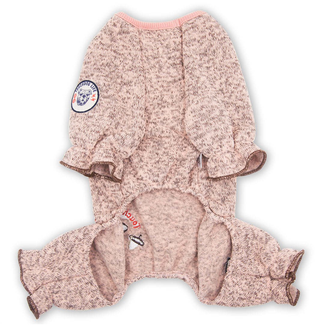 The Touchdog BARK-ZZ full bodied thermal jumpsuit is composed of soft cotton and polyester blended shell. Outer shell is further blast treated for an added plush and softer feel. Comfortably covers all 4 sleeves and features memorized stitching for a more customized placement. Features accented embroidered details along the back and added accented trimming along the sleeve areas with a leash slit along the neck area. Machine washable. Available in Multiple Colors and Sizes.